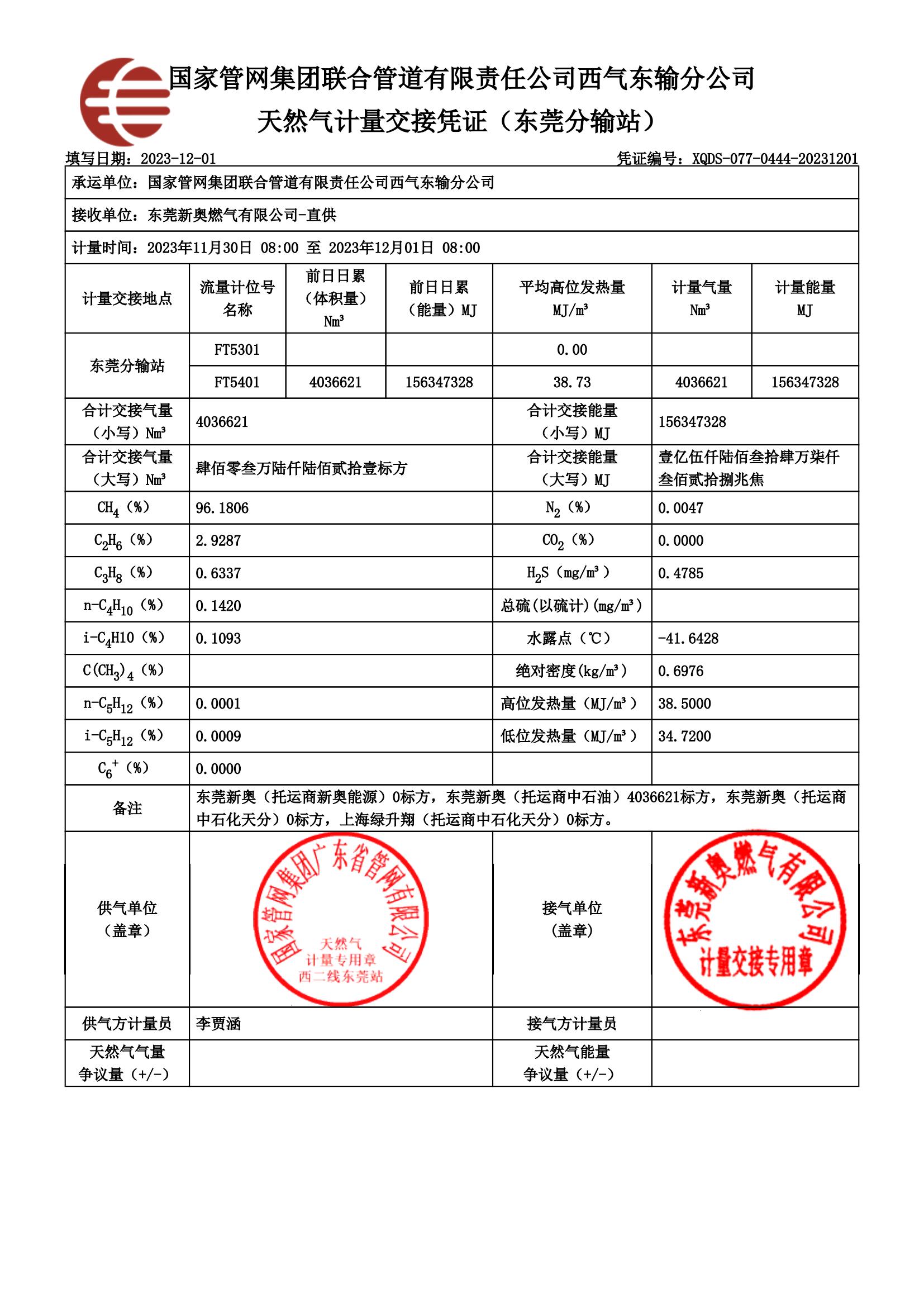 東莞新奧燃氣2023年12月份供氣質量檢查報告公示