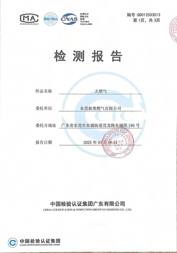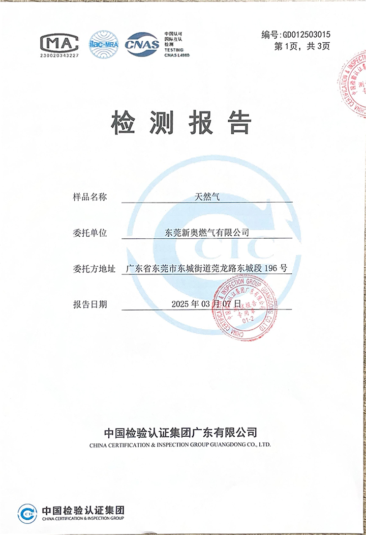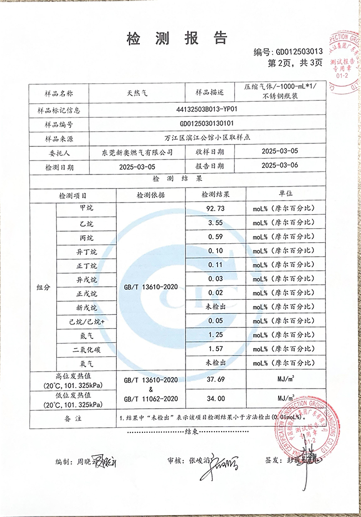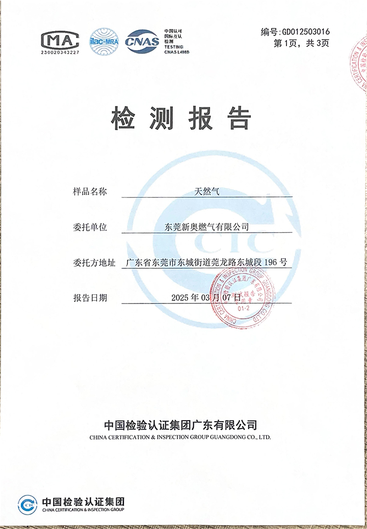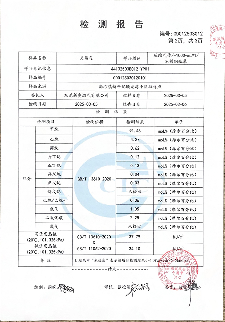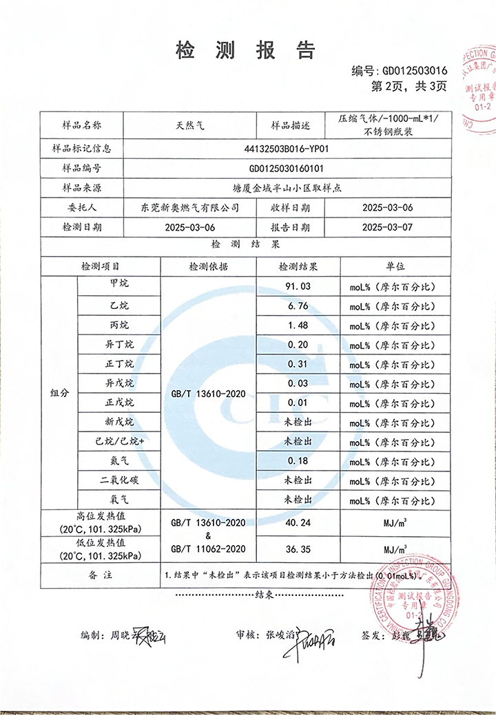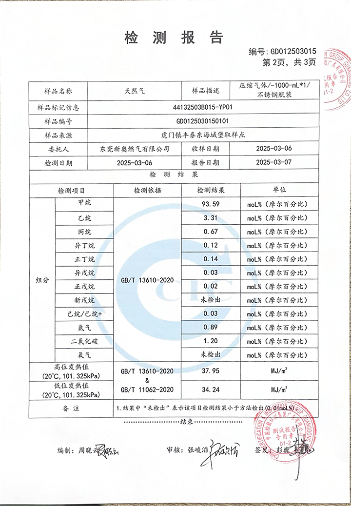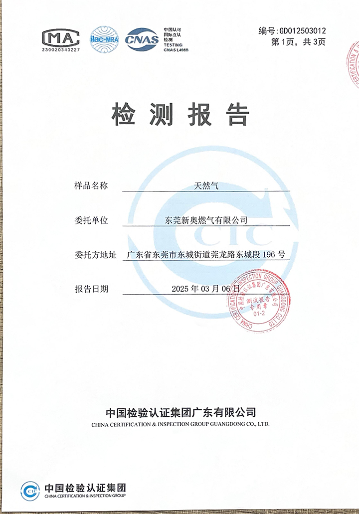 東莞新奧2025年3月天然氣氣質(zhì)報(bào)告公示