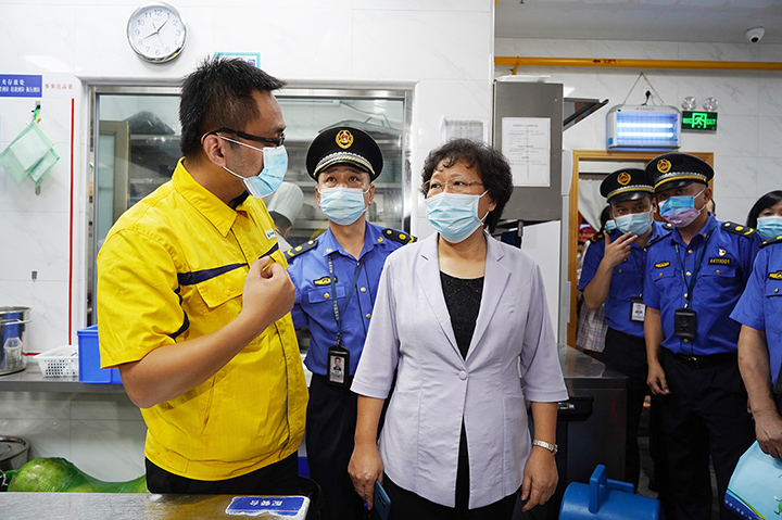 ▲喻麗君常務副市長(右)到餐飲場所了解情況