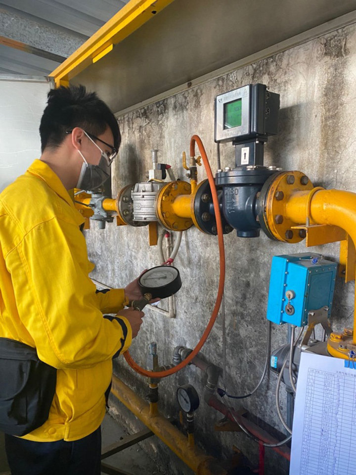 按照往常,這項工作需要3-4個人用一整天時間才能完成。考慮到當(dāng)?shù)丶毙栌眠@批房間作為隔離場所,盧森與林榮虎計劃輪流作業(yè),用半天時間就完成置換通氣工作。在長達4小時的不間斷作業(yè)中,盧森與林榮虎配合默契,分工明確,細致的做好換表、保壓、記錄、測試等工作,順利完成了任務(wù),也確保了通氣質(zhì)量。面對他人的稱贊,盧森卻覺得不足掛齒,“我們沒有考慮太多,用戶的需求就是命令,這是我們的本職工作”。
